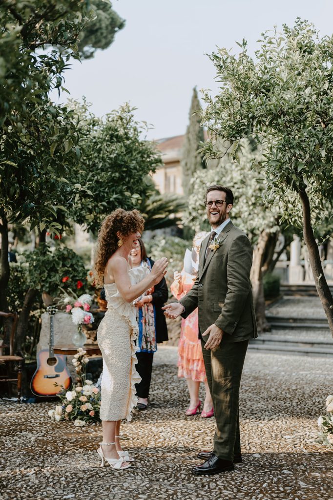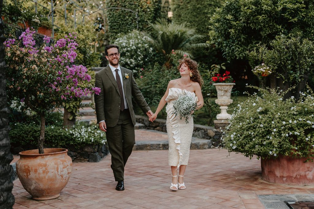 Dall’Australia hanno deciso di coronare il loro amore con le persone a loro più care, la famiglia e gli amici più intimi, e hanno scelto la Sicilia. Tutti insieme hanno passato una settimana in un’incantevole villa storica, una specie di oasi in mezzo al caos cittadino, alle pendici dell’Etna.